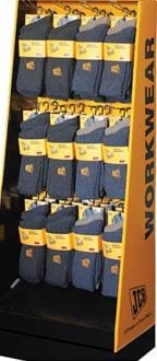 This sock planogram includes socks for men, women and children. The stand includes: Commando socks, Protrek socks, Punch Bootsox, Mens Sunday socks, Dunlop Wellie Basic PU insoles, Ladies Feet Heater, Ladies Contrast Ankle 3 pack socks, Lee Cooper socks, Boys Fashion Ankle socks, Girls Fashion Ankle socks, Mens 5 Pack Sports sock, Mens 5 Pack Boots socks and Mens Ultimate 3 Pack socks. This stand also includes both men’s and women’s thermal leggings. It is a 4ft stand and is perfect for your retail store giving you are variety of socks to choose from.