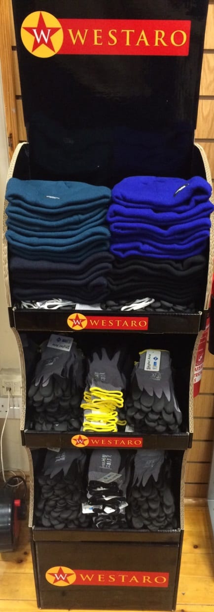 This stand includes 30 Thinsulate double layer caps and 120 Skytec Aria gloves. This stand is ideal for locating beside the cash register to increase impulse sales.