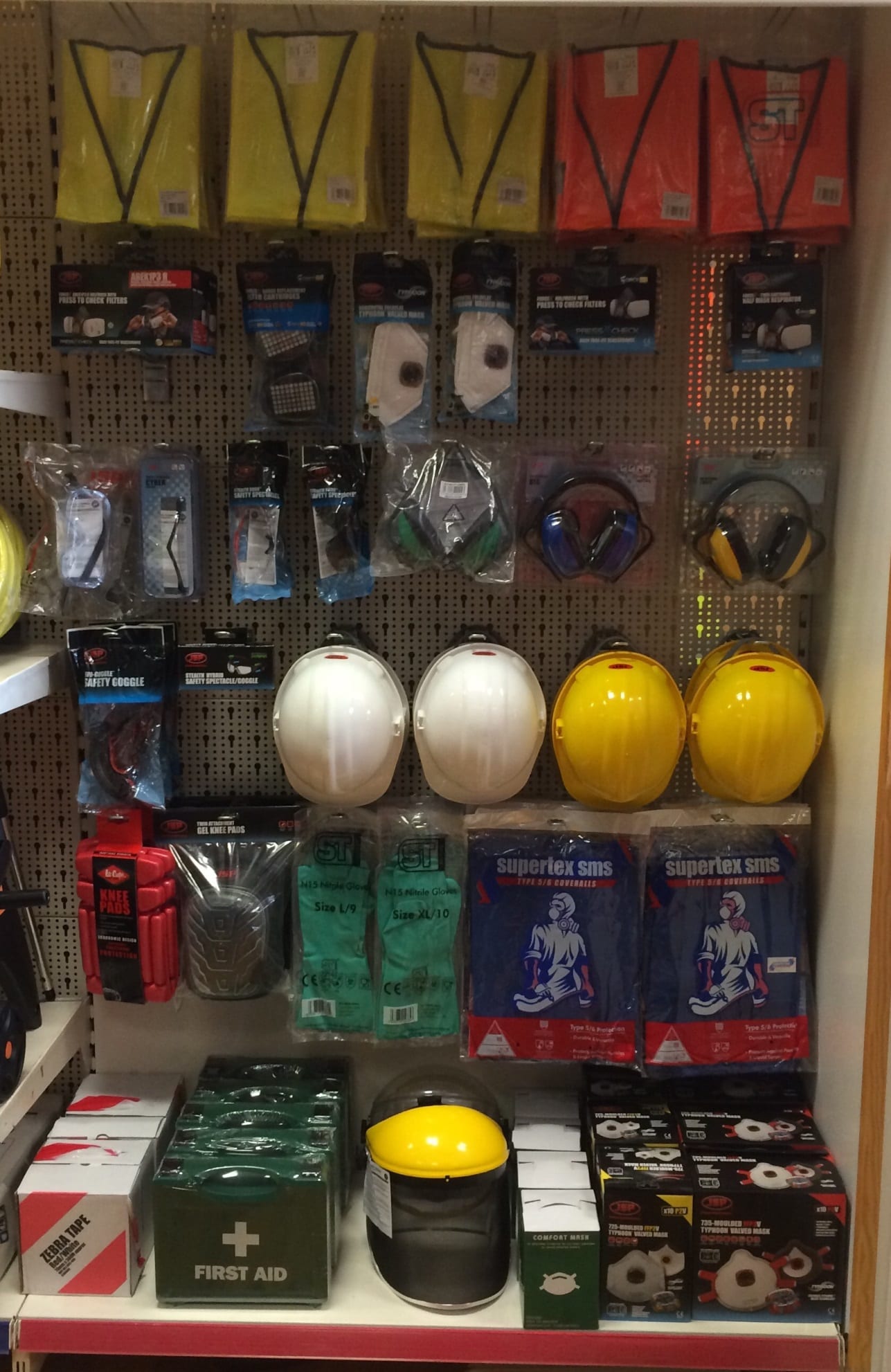 The Safety Planogram includes Hi Viz Vests, Force 8 Half Mask + ABEK1P3 Filters, Force 8 Replacements P2C ABEK1P3, Typhoon Fold Flat FFP2V, Typhoon Fold Flat FFP3V, Force 8 Half Mask + P3 Dust Filters P2C, Force 8 Replacements P2C P3 Dust Filters, Safety Googles, Stealth 8000 Safety Safety Spectacles Clear and Tinted, Ear Defender Standard Supamuff,Clam Shell Ear Defenders,EVO Indirect Vent Anti Mist Google, Stealth Hybrid Googles, Standard Safety Helmets, Lee Cooper Knee Pads, Gel Pro Knee Pads, Gel Pro Knee Pads, Green Nitrile Gloves, Disposable Boilersuits Supertex Type 5/6, Zebra Warning Tape, First Aid Kit (1-10 People), Browguard Visor Clear and Mesh Visor, Cup Dust Masks, Moulded FFP2V Dust Mask Typhoon Valve and Moulded FFP3V Dust Mask Typhoon Valve.
